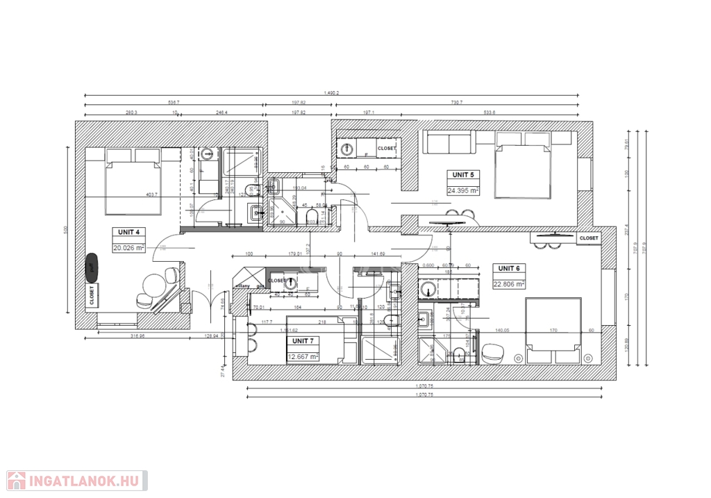 Az ingatlan felújítása a közelmúltban fejeződött be, így jelenlegi állapotában azonnal üzemeltethető befektetésként. A kialakítás során négy külön lakóegység került létrehozásra, amelyek mindegyike rendelkezik:
