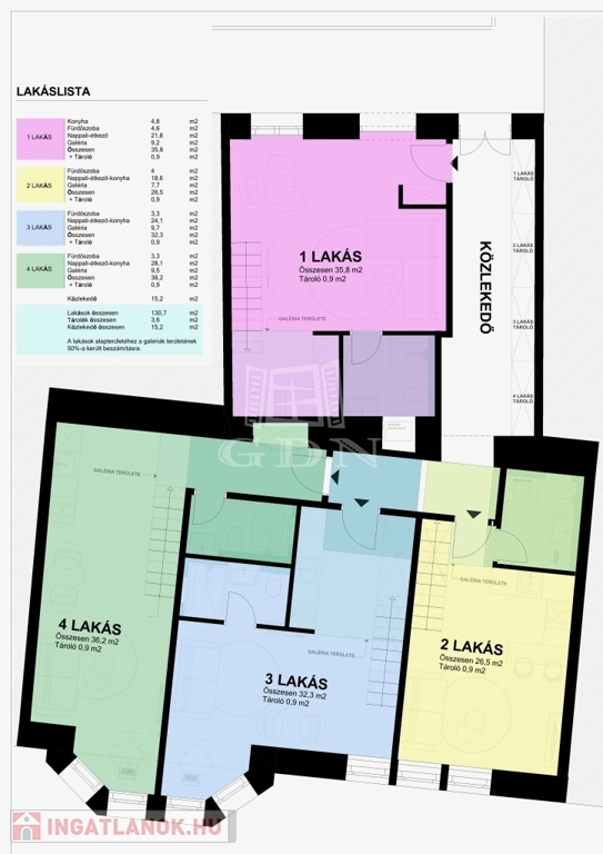 A koncepció: kis alapterületű, jól tagolt, galériás lakások, amelyek a belvárosi bérleti piacon stabilan és kiszámíthatóan működnek. A galériák lehetővé teszik a nappali–háló funkció elkülönítését, ami érezhetően növeli a kiadhatóságot és az értékesíthetőséget.