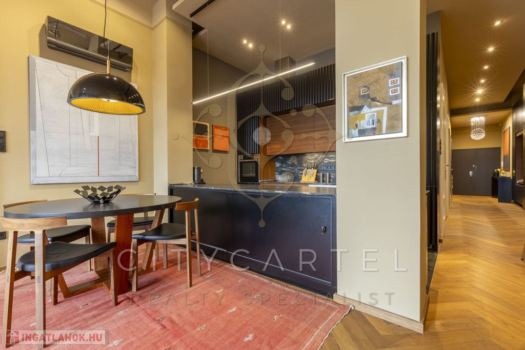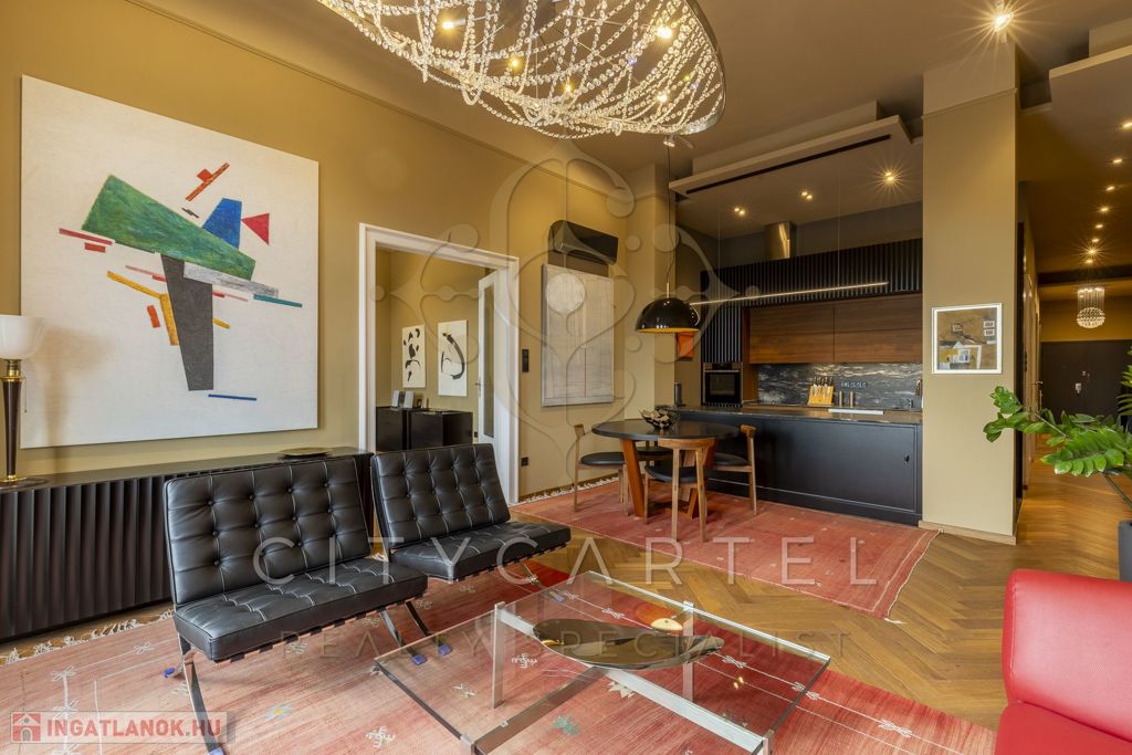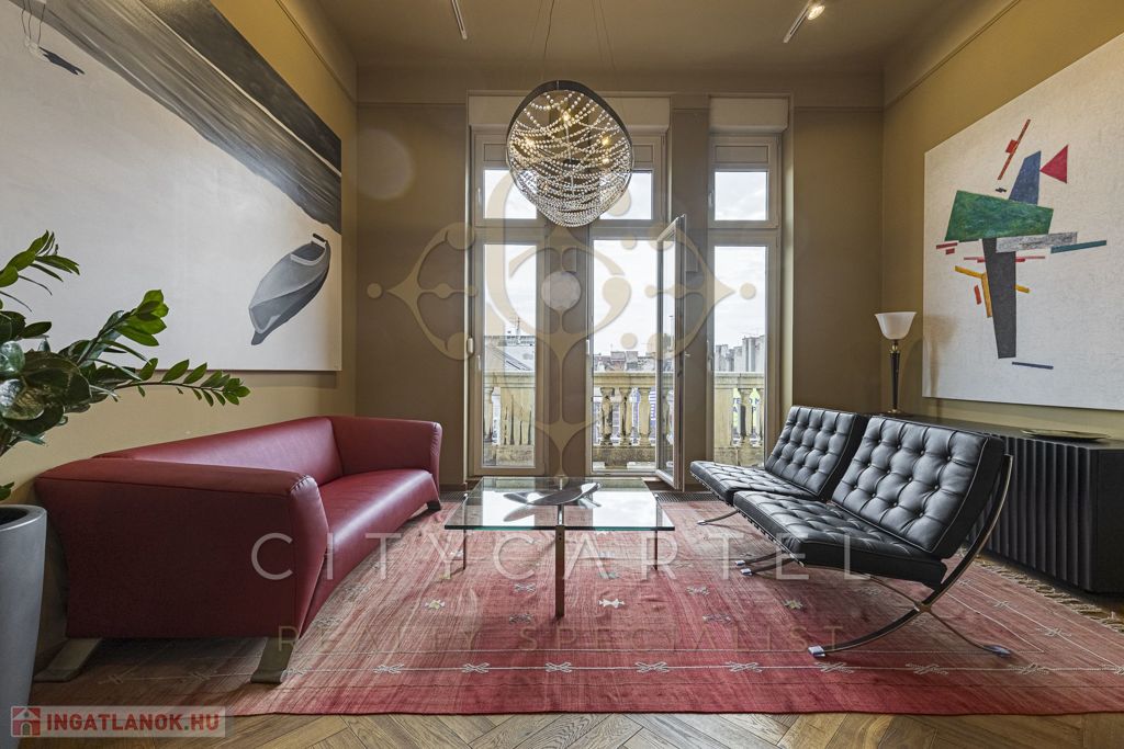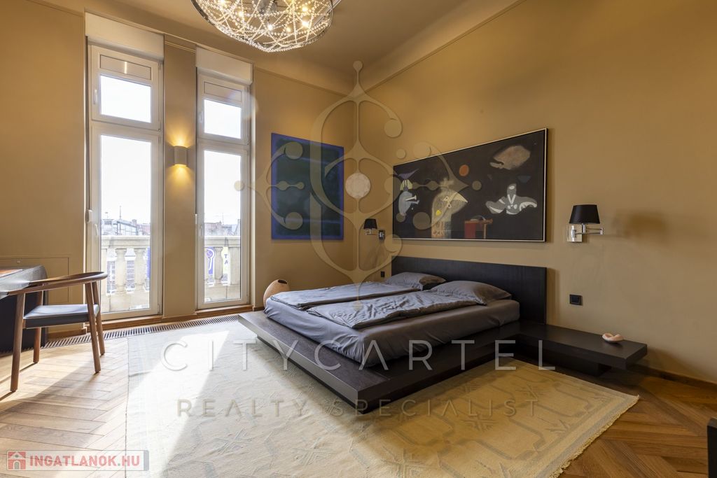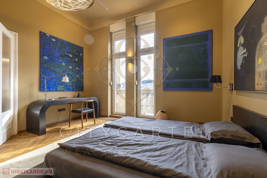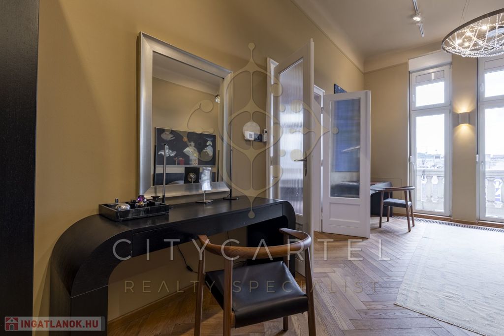 Astoriánál, a presztízs értékkel bíró, 1939-ben épült, különleges, dupla lépcsősoros, elegáns előtérrel és 2 lifttel rendelkező, art deco Georgia ház 6. emeletén az épület egyik legszebb, 2024-ben teljes körűen felújított, bruttó 124 nm-es, nappali + 2 hálószobás, duplakomfortos, gépesített és berendezett luxuslakása keresi leendő tulajdonosát.