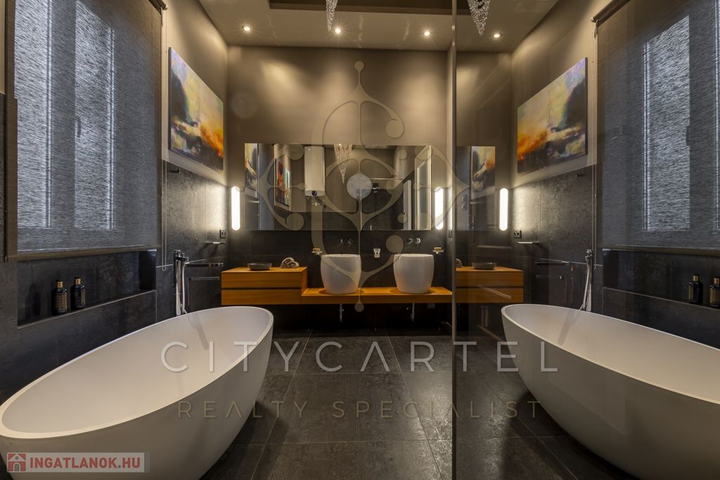 Mindkét fürdőszobában exkluzív szaniterek (Alessi one, Antonio Lupi, Hansgrohe) és kivételes, Versace burkolatok találhatóak.