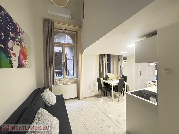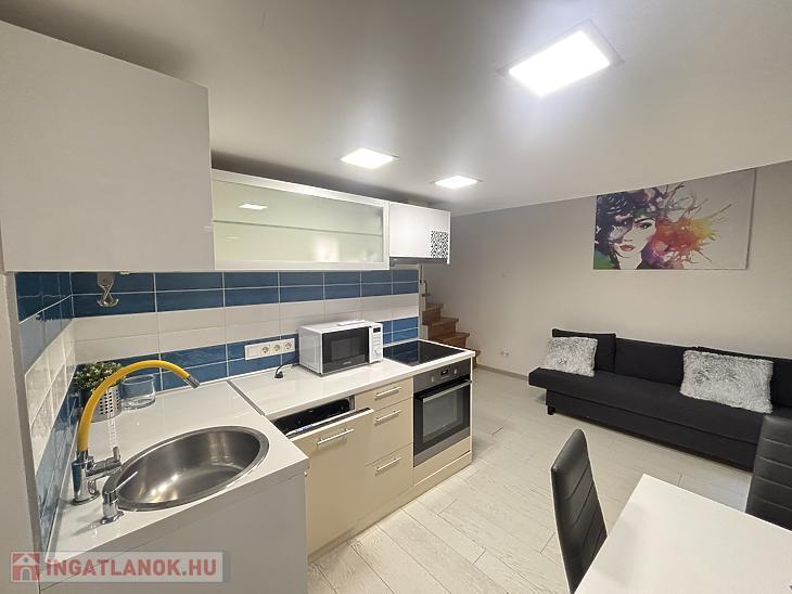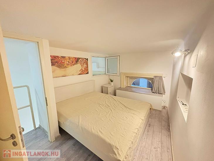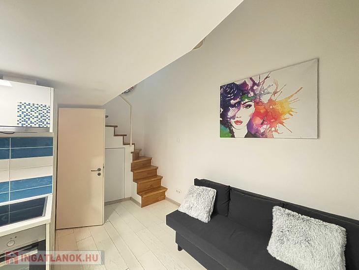 A belváros egyik legnépszerűbb részén kínálunk megvételre egy 20 nm-es, hangulatos és praktikus elrendezésű kislakást. Az ingatlan különlegessége a 15 nm-es, álló magasságú, zárható galéria, amely kényelmes, elkülönített hálórészként szolgál. Ennek köszönhetően az alsó szinten egy tágas, amerikai konyhás nappali került kialakításra, amely jól berendezhető és maximálisan kihasználható életteret biztosít.