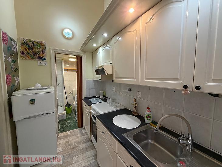 A földszinti ingatlan 1 szoba + konyhás kialakítású, galériával bővítve, amely kényelmes alvóteret biztosít, így a lakótér jól kihasználható. A galéria belmagassága körülbelül 170 cm. A lakáshoz külön tároló is tartozik, ami tovább növeli a praktikumot.