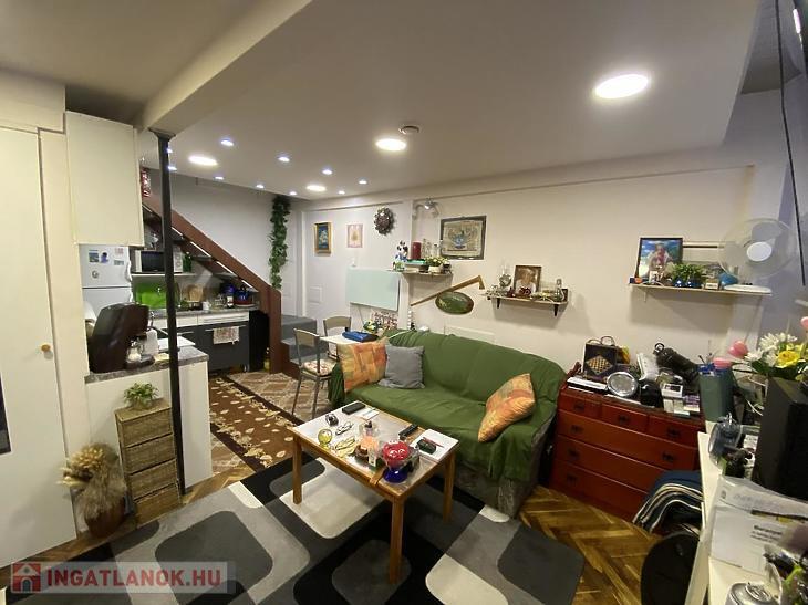 Eladó egy különleges kialakítású, belső kétszintes, utcára nyíló, 2 szobás lakás Budapest VII. kerületében, az Izabella utcában.