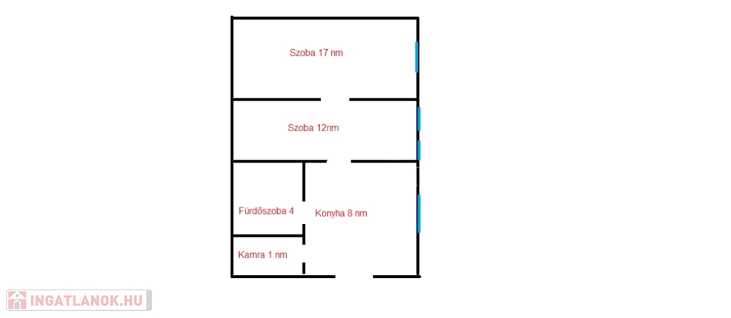 Az ingatlan keleti tájolású, ablakai udvarra néznek.