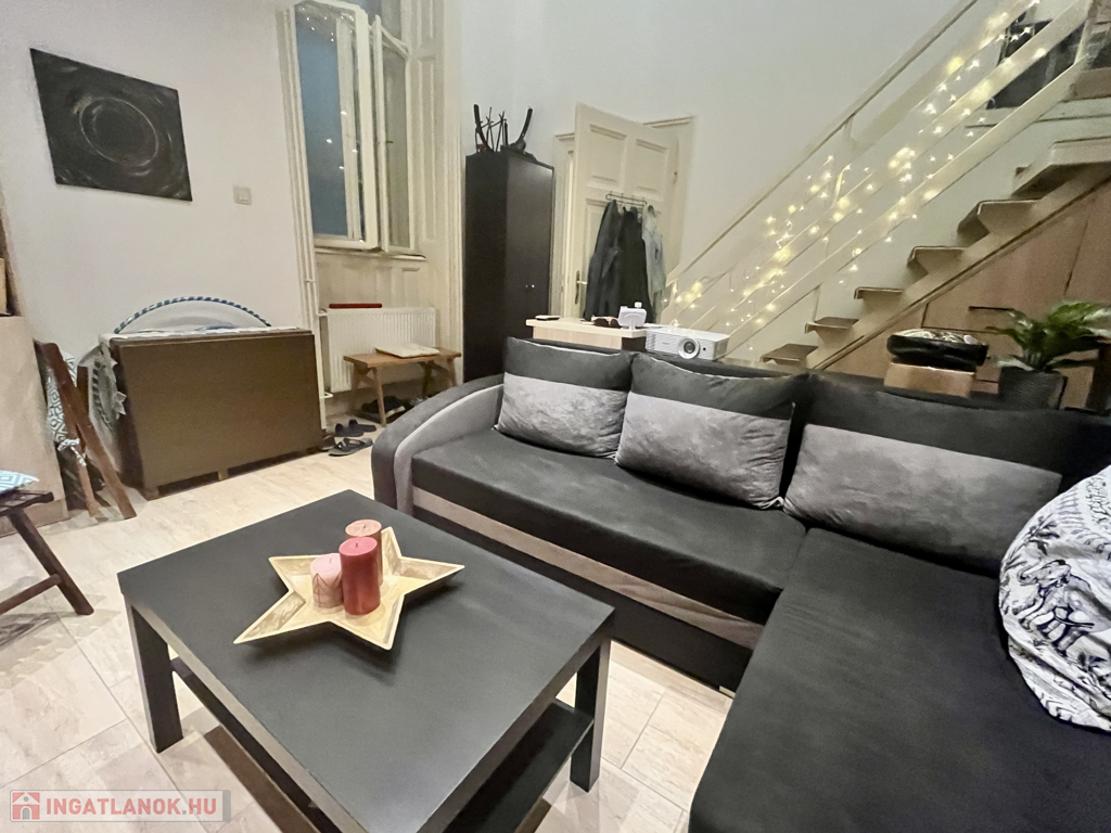 Budapest VII. kerületében, a Városliget közvetlen közelében eladó egy belső udvarra néző, földszinti, kétszintes, kiváló állapotú tégla lakás, 4,65 m belmagassággal.