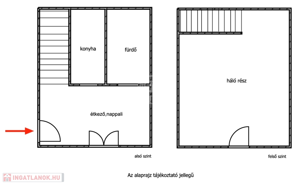A kétszintes kialakításnak köszönhetően az alsó szint a kiszolgáló funkciókat, míg a felső szint az életteret biztosítja, így a lakás méretéhez képest kifejezetten jól élhető és praktikus.