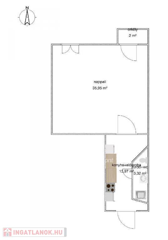 * Jó elosztás: Egy szobával, konyhával, fürdőszobával és WC-vel rendelkezik, az ingatlan részben bútorozott, a konyha teljesen felszerelt. A konyhai eszközök és gépek megegyezés tárgyát képzik.