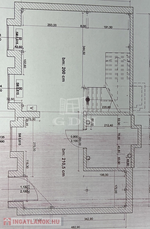 A tulajdoni lapon „műhely” megnevezésű, belmagasság a földszinten 210 cm, az emeleten 230 cm.