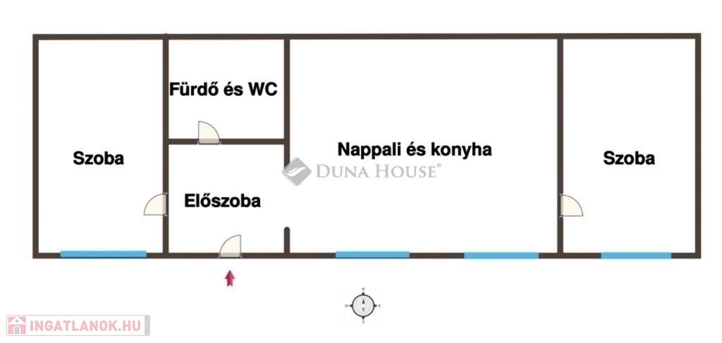 Az ingatlan 48 m²-es, két hálószobával és amerikai konyhás nappalival rendelkezik. A fürdőszoba WC-vel egyben található, a hatalmas belmagasság miatt pedig galériázható, így akár extra háló- vagy dolgozórész is kialakítható.