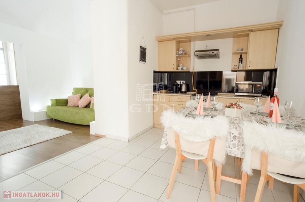 A lakás ideális elosztású: tágas nappali + 2 külön nyíló félszoba, amelyek kiválóan használhatók hálószobának, dolgozószobának. A modern konyha és a fürdőszoba is a felújítás során teljes megújuláson esett át.