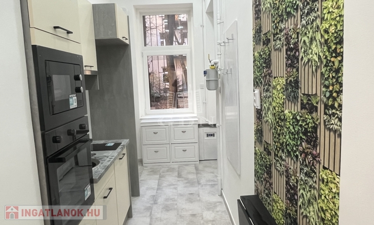 Gépesített konyha: mosogatógép, sütő, mikró, főzőlap, kivezetett elszívó, hűtő