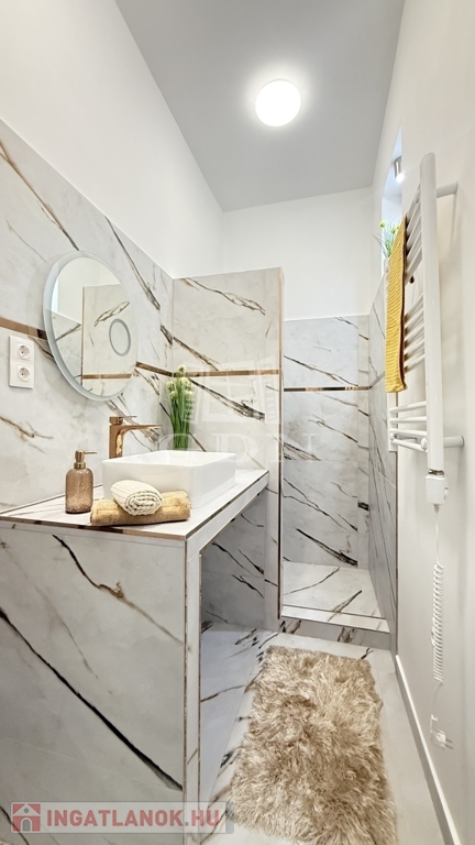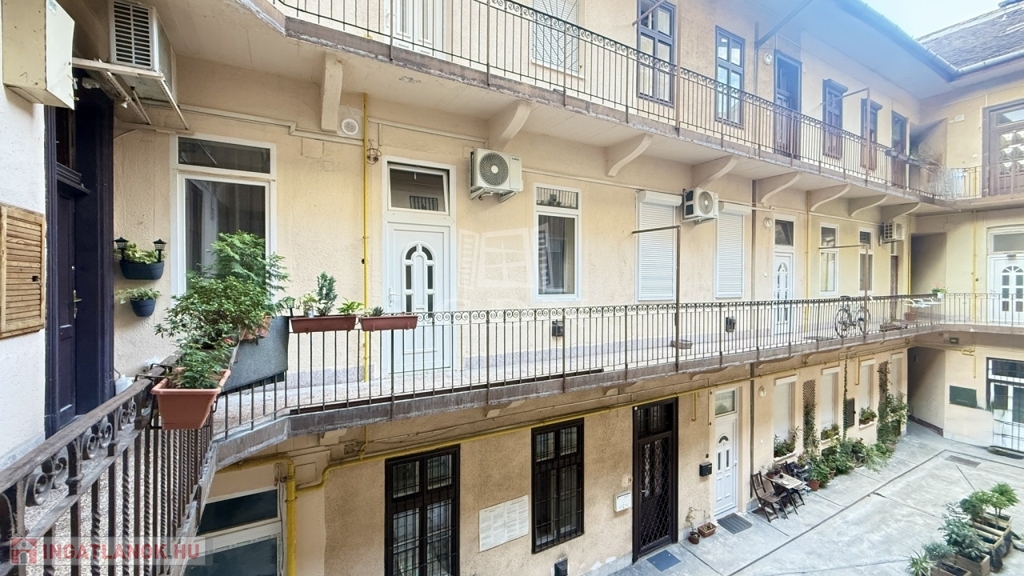 Az első emeleti, udvari fekvésű ingatlan csendes, mégis egy lépésre van a belváros nyüzsgésétől.