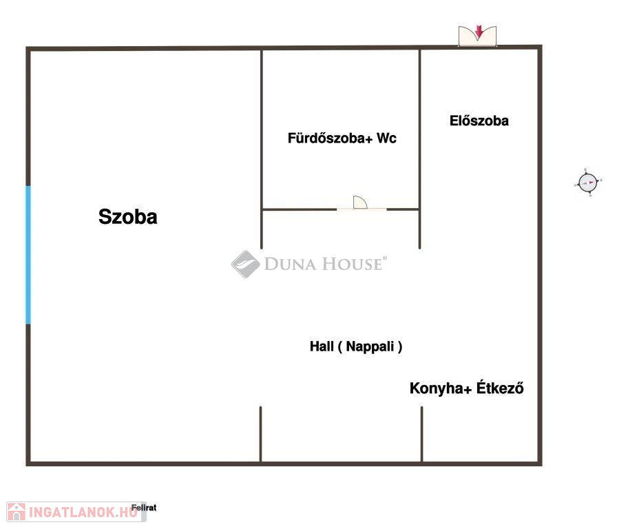 -1 szoba, hall, étkező