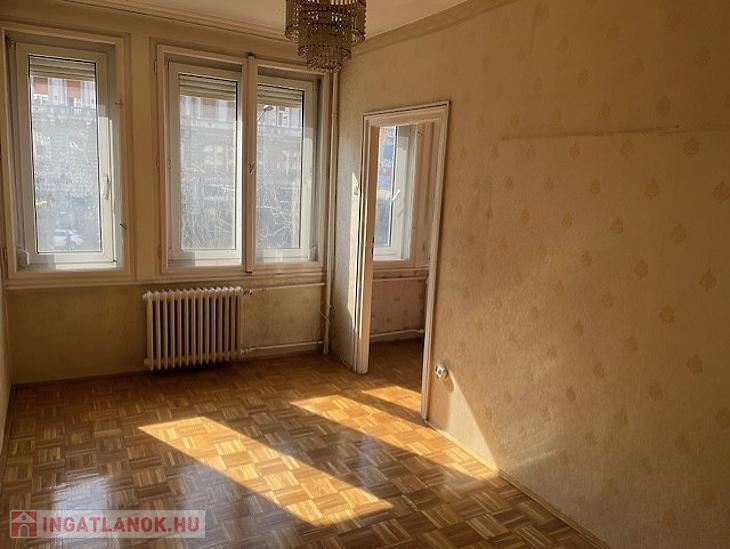 Eladó egy 58 négyzetméteres, háromszobás lakás Budapest 7. kerületében, a Károly körúton, liftes társasház első emeletén.
