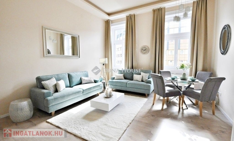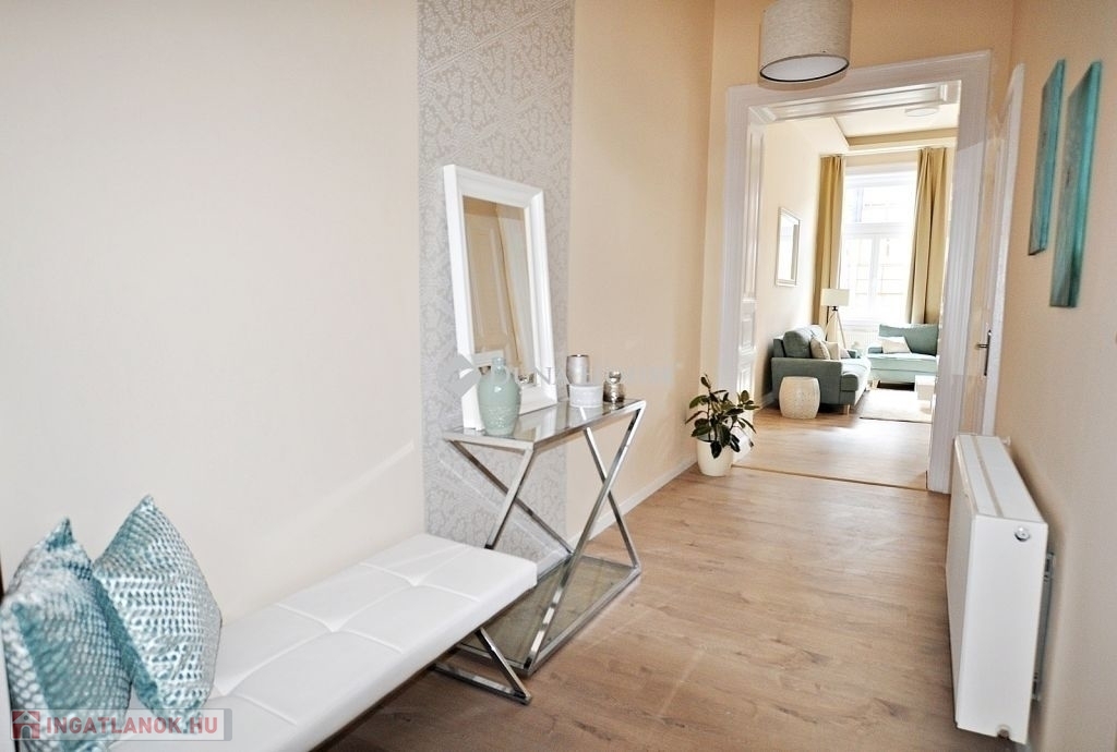 Eladó stílusos, felújított nagypolgári lakás a Rottenbiller utcában-A belvárosi elegancia találkozása a modern kényelemmelEladásra kínálunk Budapest VII. kerületének egyik legpatinásabb utcájában, a Rottenbiller utcában egy igényesen felújított, nagypolgári jellegű, 2 és fél szobás lakást. Az ingatlan egy rendezett, klasszikus polgári társasházban található, amelynek elhelyezkedése ideális mind lakhatási, mind befektetési célokra.A lakás egyik legnagyobb értéke a nagy belmagasság és a kiváló térérzet, amelyet a tágas, világos helyiségek tovább erősítenek. A teljes körű felújítás során a klasszikus stílusjegyek megtartása mellett modern megoldások kerültek beépítésre, így az ingatlan egyszerre nyújt időtálló eleganciát és korszerű kényelmet. A fűtést kondenzációs kazán biztosítja, emellett hűtő-fűtő klíma is rendelkezésre áll, ami egész évben komfortossá teszi a lakást.Jelenleg rövid távú kiadásként, Airbnb-ként működik, így azonnali bevételt termelő befektetésként is megvásárolható. A társasház engedélyezi a rövid távú bérbeadást, ami különösen értékes szempont a belvárosi ingatlanok piacán.A Rottenbiller utca elhelyezkedése kiváló: néhány perc sétára található a Keleti pályaudvar, a Blaha Lujza tér, a Városliget, valamint számos egyetem, kávézó, étterem és üzlet. A környék infrastruktúrája fejlett, tömegközlekedéssel könnyedén elérhető a város bármely pontja.Ez az ingatlan tökéletes választás lehet azok számára, akik belvárosi, mégis nyugodt környezetben keresnek minőségi otthont, vagy olyan befektetési lehetőséget, amely azonnal hasznot termel. A lakás tehermentes, rugalmasan megtekinthető, és akár azonnal birtokba is vehető.