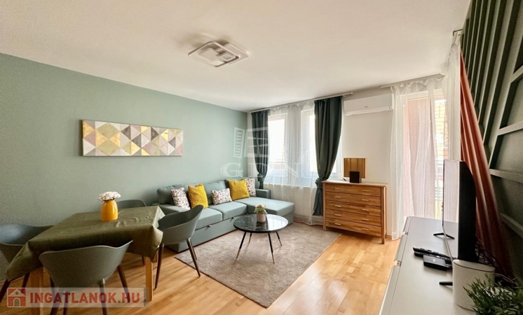 47 m² + 8,5 m² erkély, légkondicionált, udvari nézet, 2010-ben épült, liftes ház 7. emeletén.