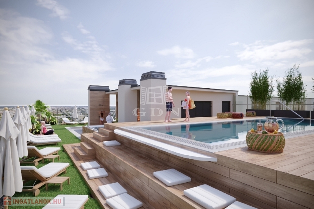 A 104 lakásos, liftes társas házat kiválóan kialakított modern lakások és belső terek jellemzik. A lakások a legmodernebb műszaki felszereltséggel rendelkeznek. Az ingatlan értékét a 0-24 portaszolgálat és a környéken egyedülálló tetőtéri wellness kényelmi szolgáltatások is növelik. A tetőn kialakított, kizárólag a lakók számára használható medence, szauna, jakuzzi és panoráma terasz biztosítja, hogy elmerülhessen a nyugalom szigetében anélkül, hogy el kellene hagynia otthonát. Kiváló elhelyezkedése és a minőségi kivitelezés hozzájárul, hogy befektetőként értékálló lakást vásároljon. A lakóparkban lehetőség van airbnb és hosszú távú bérbeadásra. Ha pedig saját otthonnak vásárolja, akkor biztosított generációkon keresztül értékállósága. A lakás igény szerint berendezéssel megvásárolható.