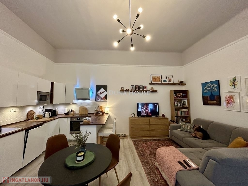 58 m²-es lakás a Palotanegyedben 2. emelet, amerikai konyhás nappali + 2 félszoba!Eladásra kínálok egy 58 m²-es, plusz 3,4 m² és 4,5 m² galériákkal kialakított, különleges hangulatú, tavaly teljeskörűen felújított lakást a Palotanegyedben, egy 3 emeletes, rendezett társasház 2. emeletén (lift nélkül). A lakás dél-keleti tájolású, csendes belső udvarra néz, és a körfolyosón nincs átjárás a lakás előtt, így teljes nyugalmat biztosít.A felújítás során minden víz- és elektromos vezeték cserélve lett, új, modern konyhabútor került beépítésre, az enteriőrt lakberendező alakította ki. A terek kiválóan kihasználtak, a két galéria maximális helykínálatot biztosít.Felszereltség:- 3 db hűtő-fűtő klíma a helyiségekben- amerikai konyhás nappaliban gázkonvektor- hőszivattyús villanybojler- fürdőben elektromos fregoli- gardrób, spotlámpás világításA bútorok külön megállapodás szerint elérhetők.Kiemelkedő elhelyezkedés - a lakás a Kálvin tér és a Corvin-negyed között található, pár perc sétára mindkettőtől. A környék infrastrukturálisan kiemelkedő: metró, villamos, buszok, kávézók, éttermek, egyetemek és kulturális helyszínek könnyen elérhetők.Jöjjön el, és nézze meg ezt az egyedi hangulatú, igényesen felújított otthont!