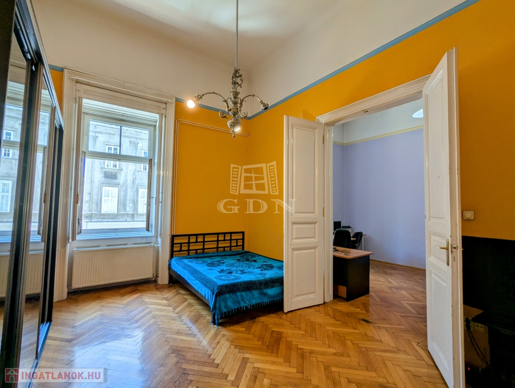 Kivételes adottságú, 91 m²-es lakás eladó Budapest egyik legpatinásabb részén, pár lépésre a Kálvin tértől, a Duna, a Vásárcsarnok és a belvárosi sétálóutcák közvetlen közelében.