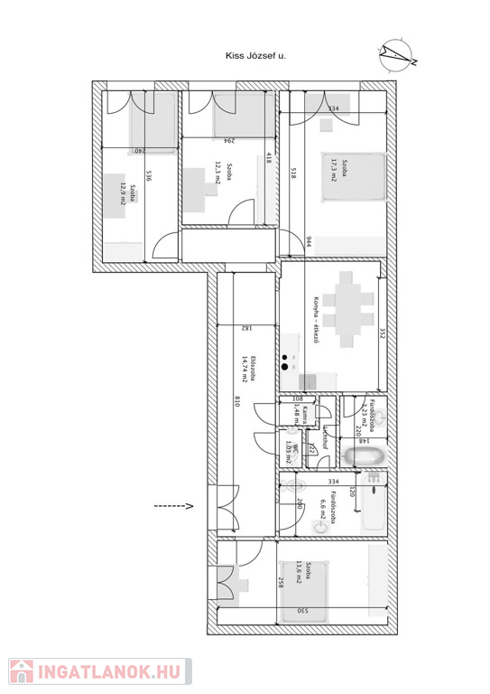 Szobák: 4 különnyíló