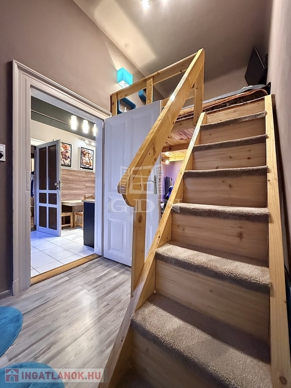 A lakás 2+1 szobás, külön konyhával, valamint nagy belmagassággal rendelkezik. Az otthon különlegessége a dupla galéria, amely kiválóan növeli a hasznos alapterületet, így ideális lehet akár dolgozósarok, hálórész vagy tároló kialakítására. A műanyag nyílászárók korszerűek, a fűtést gázkonvektorok biztosítják.