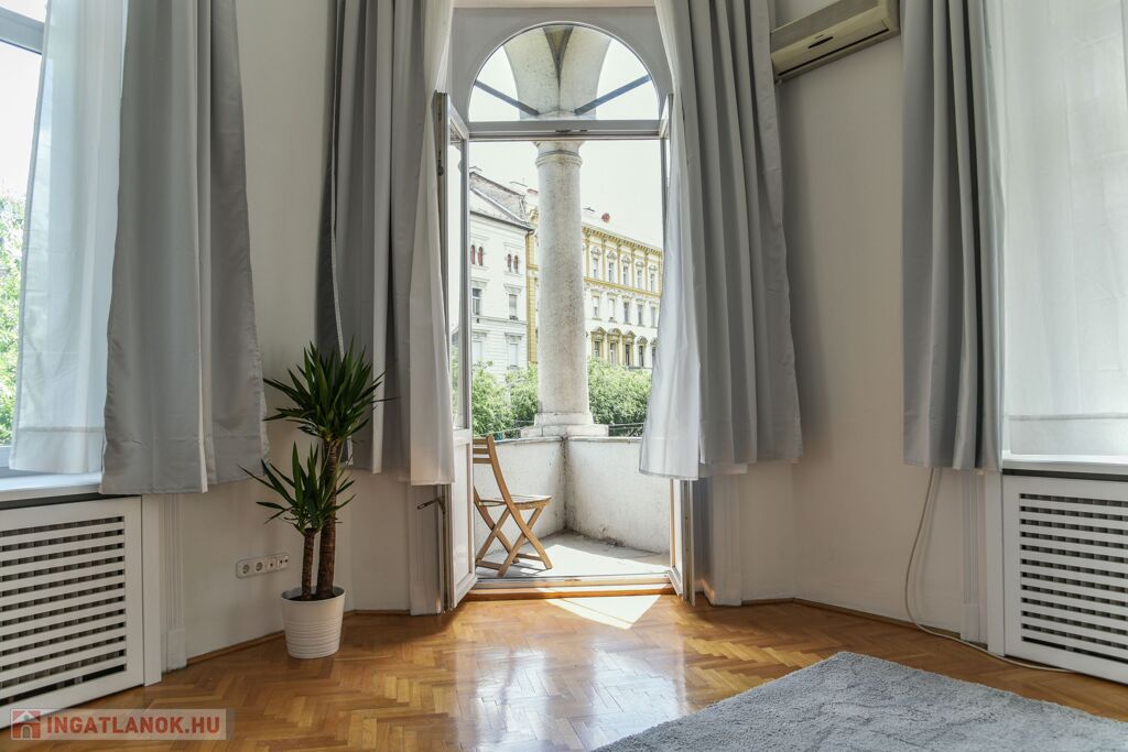 Eladó a 8. kerület Palotanegyed részén egy nagypolgári, erkélyes, térre néző lakás.