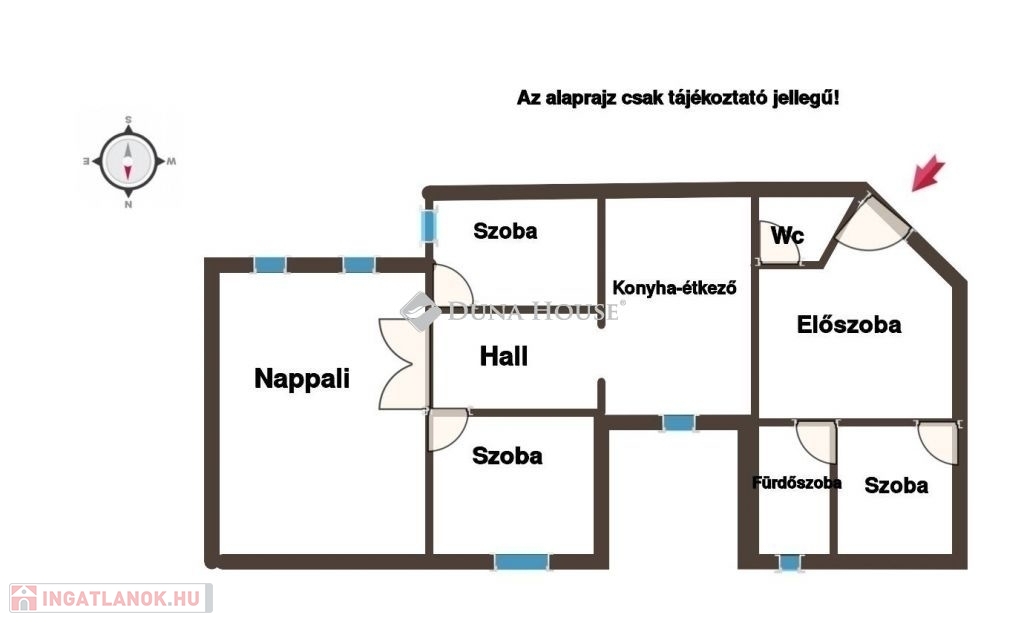 A lakás beosztása kiváló: reprezentatív nappali, három különnyíló hálószoba, nagy ablakos konyha és elegáns fürdőszoba.