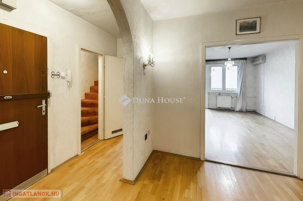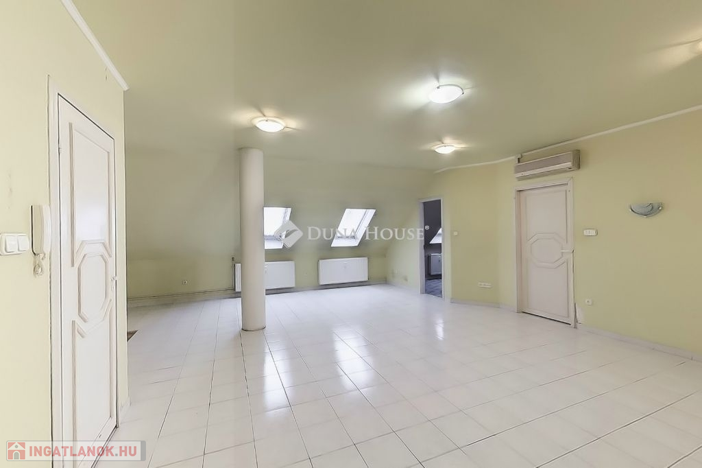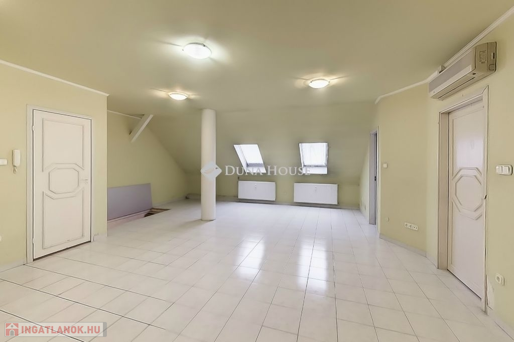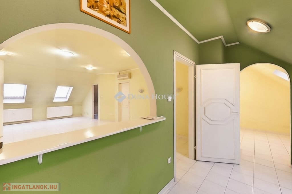 Eladó egy 1995 bent épült épület együttesben egy kétszintes összesen nettó 152 nm (bruttó 174 nm) ingatlan mely két lakásból áll, amik a lépcsőházbók külön és belül is megközelíthetőek és átjárhatóak.1. lakás: a 4. emeleten helyezkedik el és rendelkezik egy nappalival, 3 szobával, konyha, kamra, közlekedő, fürdő és wc illetve két erkély is mindkét irányban. 2. lakás: az 5. emeleten helyezkedik el és egy hatalmas 45 nm-es nappaliból áll és egy szoba, fürdő+wc, konyha, étkező és tároló van benne. Ez a lakás könnyen alakíthat és akár nappali + 3 vagy 4 szobás ingatlan is lehet belőle. Mindkét lakás külön bejárattal, mérőórákkal rendelkezik, teljesen külön elszámoláson vannak.A sátortetős épületek egy nagy közös udvart ölelnek körbe, ami zárt és csak az itt lakók használják a kis parkot és játszóteret.Opcionálisan: zárt udvari parkolóhely, illetve, 14 nm-es garázs bérelhető.