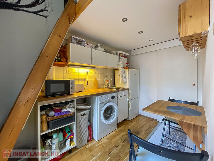 A két bejárat lehetővé tette egy különálló lakrész kialakítását, amely saját fürdőszobával, konyhával és galériás hálószobával rendelkezik, így az ingatlanban összesen két fürdőszoba és három toalett található.