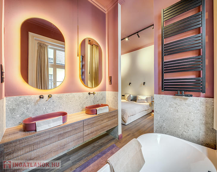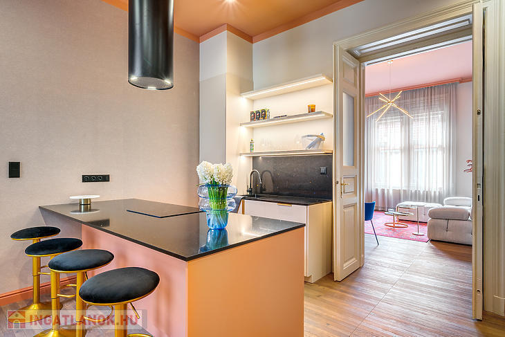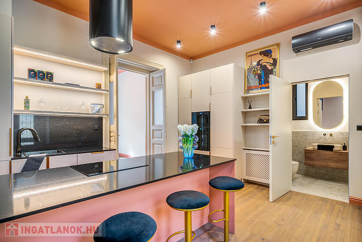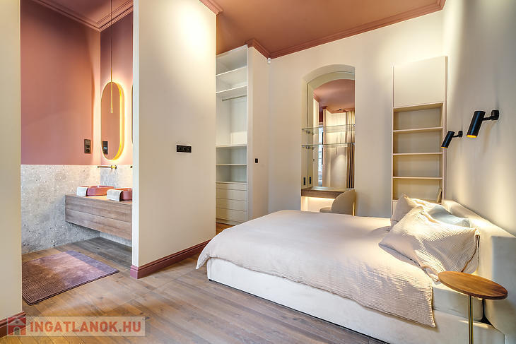 Az enteriőr kialakítása egy belsőépítész gondos munkáját dicséri – a jelenlegi berendezés döntő része; így a beépített bútorok és gépesítés is a vételár részét képezik.