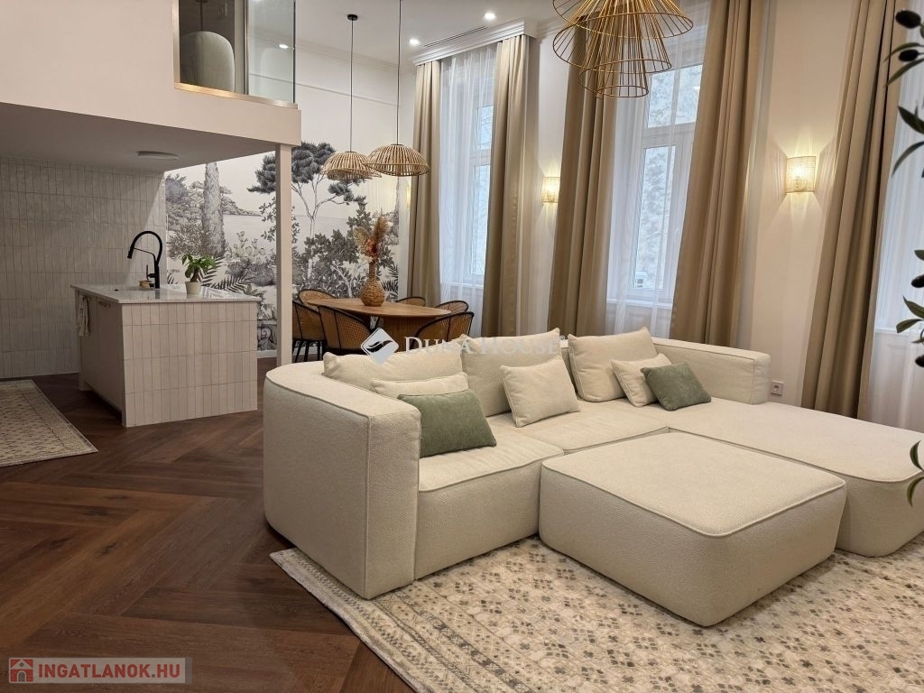a Bródy Sándor utcában kínálunk eladásra egy 70 m²-es + 9 m² galériás, teljesen újragondolt, prémium műszaki tartalommal rendelkező belvárosi lakást, 6 m² saját pincével.Ez nem egy felújított ingatlan ez egy mérnökileg és esztétikailag végigtervezett otthon.Az ingatlan teljes körűen, alapig visszabontva újult meg:új réz elektromos hálózat, új gépészet, minőségi burkolatok, egyedi asztalosmunkák. Az eredeti, több mint 100 éves beltéri ajtók felújítva megmaradtak karaktert adva a modern térnek.A fűtéshűtés egy 7,5 kW-os, légcsatornázható LG rendszerrel megoldott, frisslevegős kivitelben, mennyezeti befúvókkal így az ingatlan egész évben komfortos, ablaknyitás nélkül is.A fürdőszobában elektromos padlófűtés és 120 literes, wifis Ariston bojler biztosítja a kényelmet.A nappalihoz kapcsolódó, teljesen zárt, üvegfallal leválasztott 9 m²-es galéria valódi hálószobaként funkcionál.A konyha egyedileg gyártott, BOSCH gépekkel, hőálló Staron munkapulttal és konyhaszigettel felszerelt.Az épület kívül-belül rendezett, felújított homlokzattal, 2 lifttel, kamerarendszerrel és jó lakóközösséggel.Ez az ingatlan nem tömegigényre készült.Azoknak szól, akik értik a minőséget, a technikát és az egyediséget és nem a kompromisszumot keresik.Az ingatlan vételára tartalmazza teljes butorzatot és a gépeket is. Hívjon akár hétvégén is!