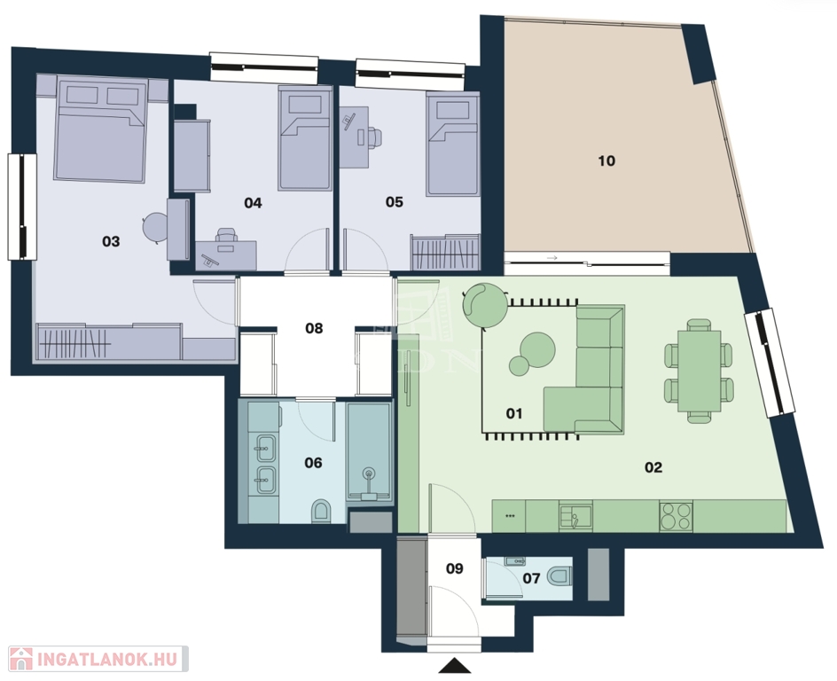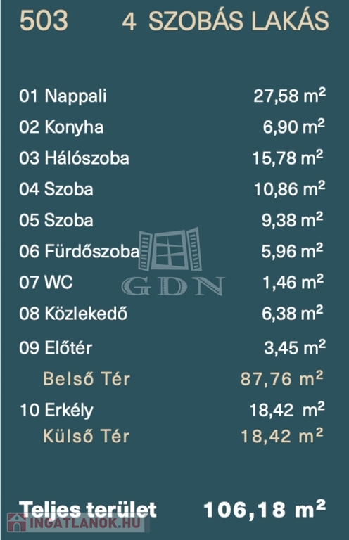 A 6 emeletes társasház 5. emeletén található ez a piacon hiánypótló három hálószobás összkomfortos, városi panorámás ingatlan. A központi tér a közel 35m2-es konyha -nappali melynek nyugati frontján egy összefüggő üvegfelület, nagy toló ajtókkal határolja a 18m2-es sarok terasztól mely tavasztól, őszig a nappali kiterjesztése. A dél-nyugati benapozásnak köszönhetően napfürdőzhetnek a leendő lakók, az alapterület üvegfelület aránynak köszönhetően pedig télen nyáron nagyon világos, mint egy igazi műterem lakás. Az átgondolt tervezésnek köszönhetően nagyszerűen elkülönülnek a hálószobák nappalitól.