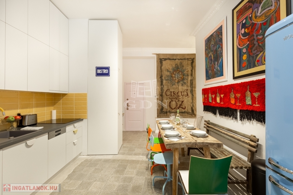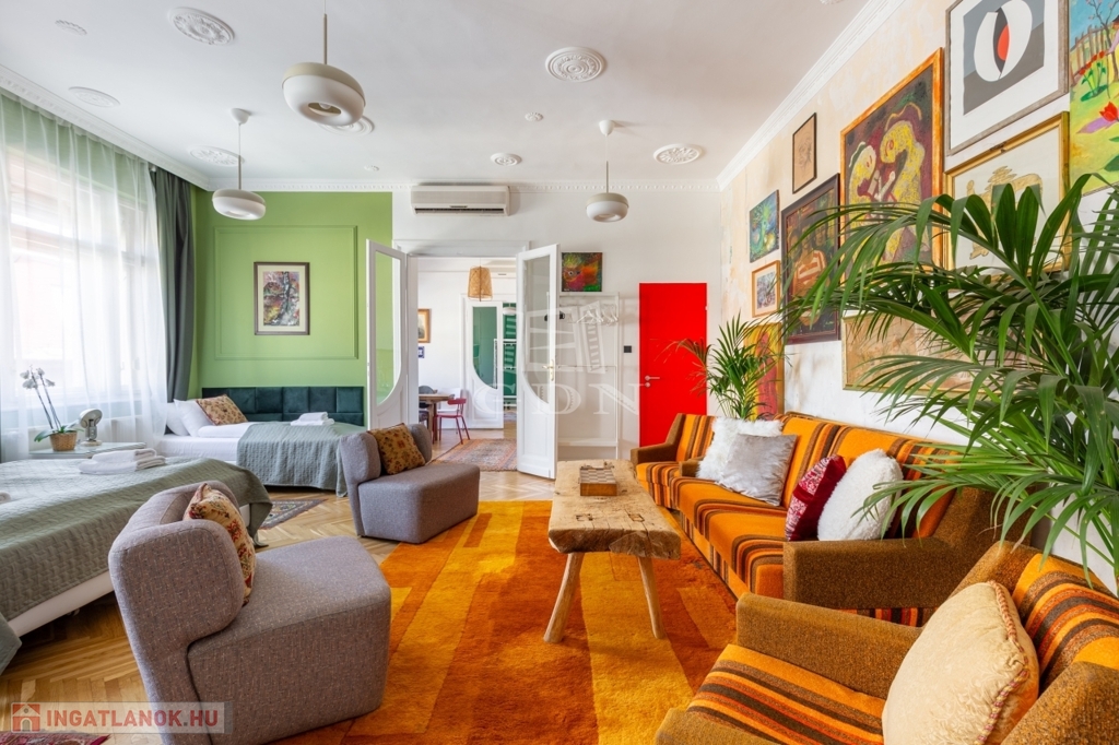 Budapest egyik legszebb belvárosi részén, a patinás Palotanegyedben, a Blaha Lujza tér közelében kínálunk megvételre egy 214 m²-es, felújított polgári ingatlant, amely ideális választás lehet nagyobb családok számára is. A lakás nagyvonalú terekkel, 3,10 méteres belmagassággal rendelkezik, és délkeleti fekvésének köszönhetően egész nap világos. Az 5 különálló szoba és 5 fürdőszoba kényelmes együttélést biztosít akár több generáció számára is, miközben minden családtagnak megmarad a saját privát tere. A 2023-ban elvégzett teljes körű felújítás (elektromos és vízvezetékek, fűtés) gondtalan beköltözést tesz lehetővé. Az ingatlan jelenlegi elrendezése rugalmasan alakítható, könnyedén klasszikus családi otthonná varázsolható.