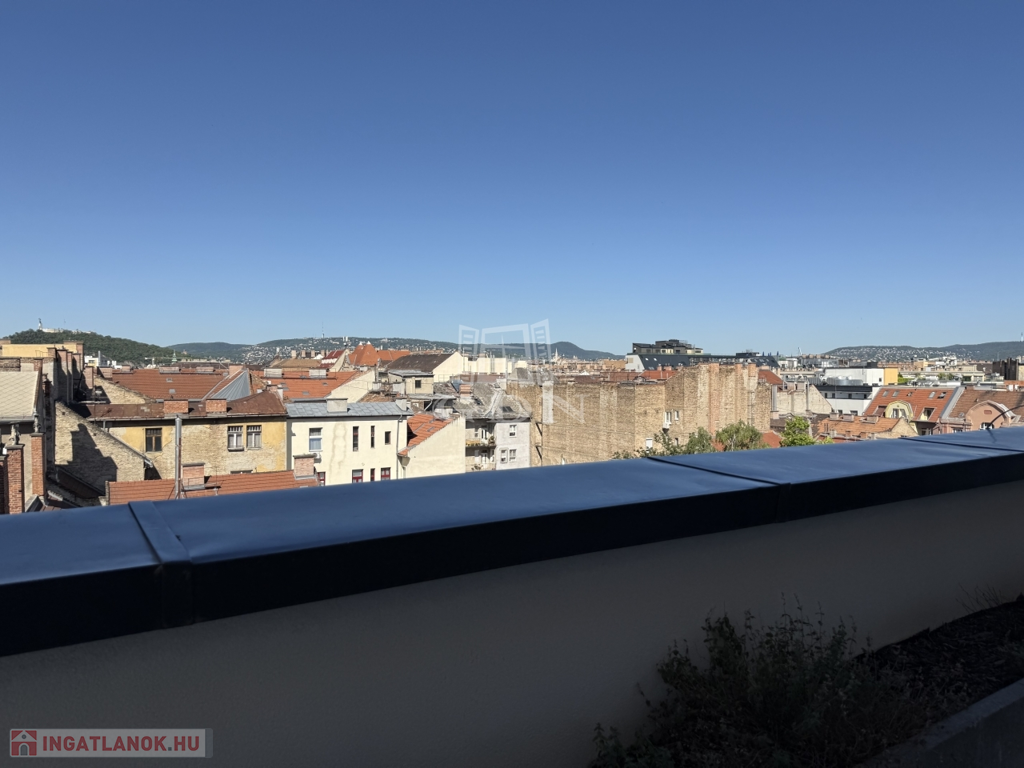 VIII. kerület csendes, mégis központi részén, új építésű ház legfelső szintjén kínálunk megvételre egy belső kétszintes, kulcsrakész, penthouse lakást, páratlan kilátással a Gellért-hegyre és a Hármashatár-hegyre, az alábbi paraméterekkel: