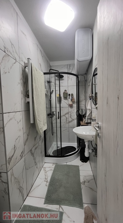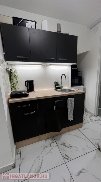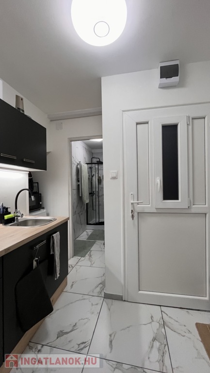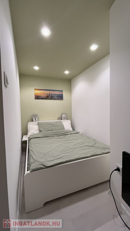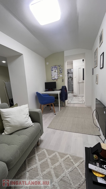 A helyiségek a következők: praktikus kis konyha, zuhanyzós fürdőszoba WC-vel, nappali, ahonnan egy közlekedőn keresztül elérhető egy intim hálófülke és egy gardrób is, így az ingatlan minden négyzetmétere praktikusan kihasználható.