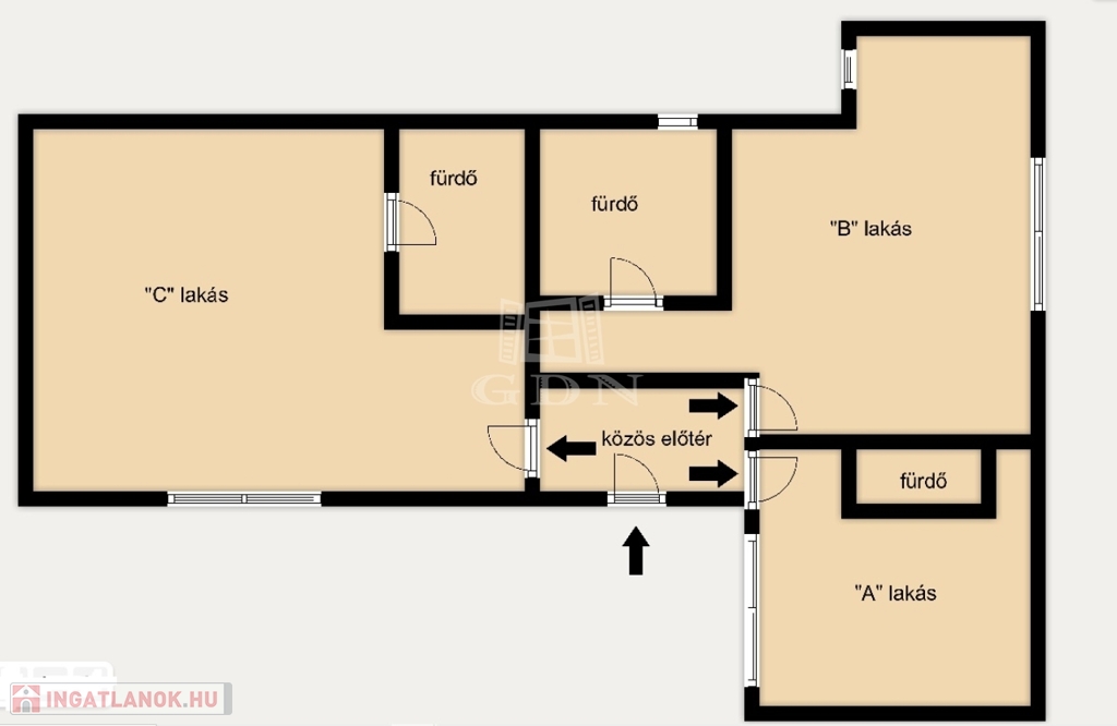 Közös előtérből nyíló lakás