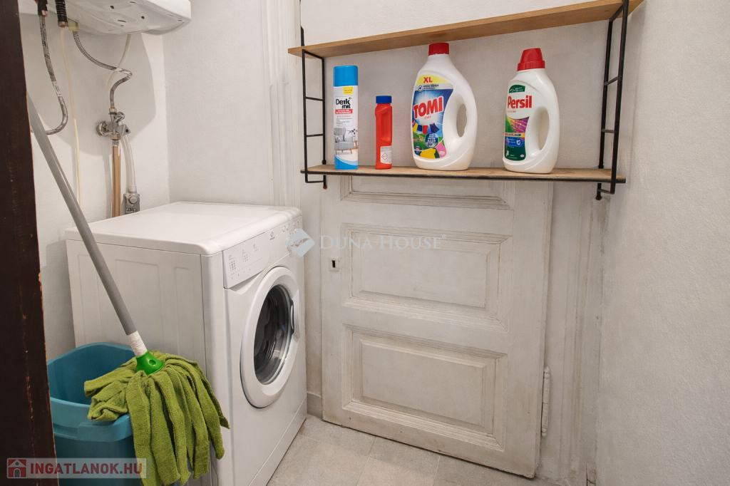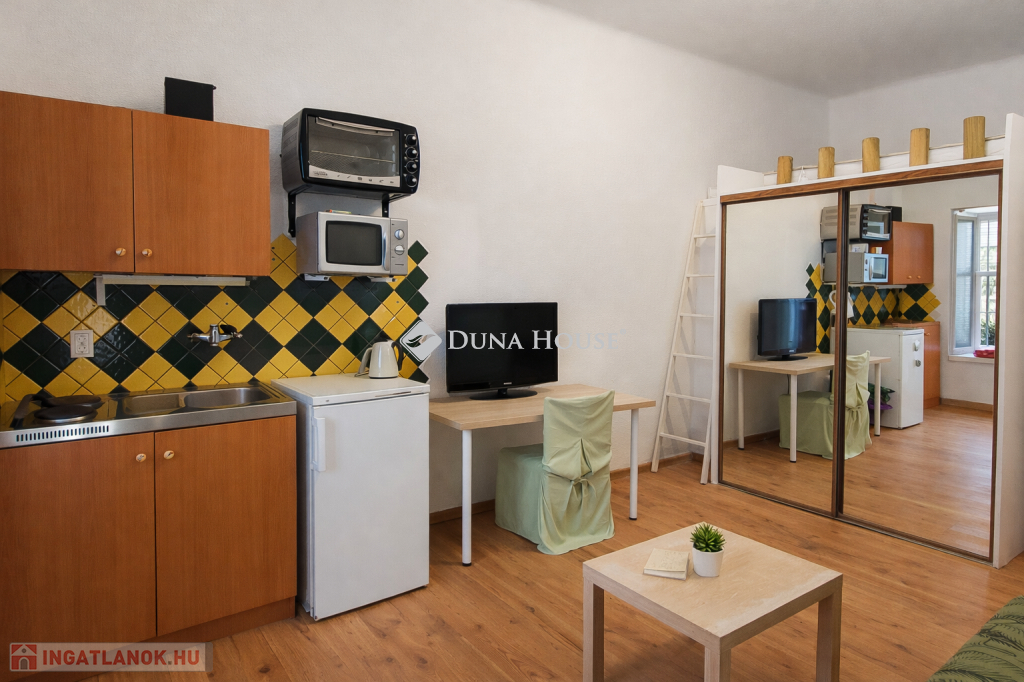 Pesti garzon ősfás kertben (ENG below)Az ingatlan jellemzői:- 25 m² teljes használható lakótér:- 19m² a tulajdoni lapon- 3,5 m² fekvőgaléria- kb. 2 m² lakáshoz tartozó és amellől nyíló háztartási tér- 4 m feletti belmagasság- Újszerű fürdőszoba sarokkáddal- Előretöltős és éjszakai mérő- Programozható fűtésrendszer- Alacsony fenntartás 6555 Ft közös költség korlátlan vízfogyasztássalKiváló elhelyezkedés Budapest belvárosában:- Pár perc sétára a metrómegállóktól (M4, M2) - Csendes, zárt belső parkos környezetA Rákóczi útról az ősfás kertbe érkezve egy felújított, neoromán stílusú, jelenleg kulturális térként működő templom mellett halladunk el. Nagyjából 100 méterrel beljebb egy 2 emeletes épület található, amely az 1800-as években iskolaként üzemelt. A helytörténeti cikkek szerint itt tanult Petőfi Sándor.Az itt lakók Luther utca és a Kiss József felöl is bejuthatnak.Az epületbe lépvén pár lepcsőfok vezet a magasföldszinti egykori parókiába, ami home officenak lett kialakítva.Az társasházban az Airbnb üzemeltetés a társasház által engedélyezett. Az ingatlan saját otthonnak vagy befektetésnek is ideális a belvárosi lokáció és az alacsony fenntartási költség miatt.------------------------------------------------------------------------------------
