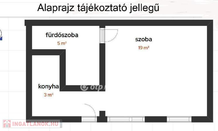 Lakás szobája kocka formájú, 19 nm. két nagy ablaka van. Bejárati ajtó biztonsági.