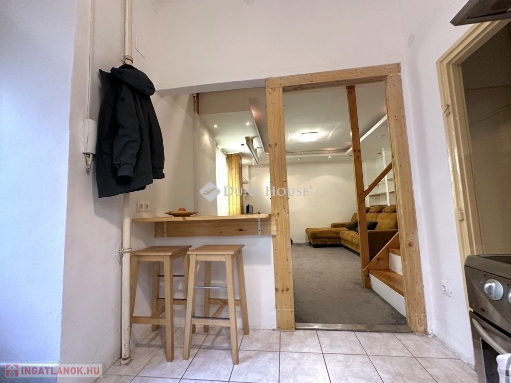 14 m² állógalériával rendelkező 1 szobás földszinti lakás a Fiumei út mellett.A lakás főbb jellemzői:33 m2 alaptrület és 14 m2 állógaléria,elrendezése: konyha, szoba, közlekedő, tároló, Wc, fürdőszoba + állógaléria (hálószobaként használt),beépített szekrény a galéria teljes szélességében, így nincs szükség további szekrénysorra,beépített tároló rész a lépcső alatt,tároló helyiség a lakáson belül,külön fürdőszoba és Wc,a konyha és a szoba között étkezéshez bárpult,alacsony fenntartási költségek,norvég panel fűtőtest biztosítja a meleget,villanybojler szolgáltatja a melegvizet,4,8 m belmagasság, mely a szoba felett megosztva nappali és galéria, a konyha esetében alacsonyabb a belmagasság,bővítési lehetőség: a konyha felett plusz egy ablakos félszoba (kb. 10 m²) kialakítható; jelenleg ez a lehetőség nincs kihasználva.A környéken az infrastruktúra és a tömegközlekedés ideálisak.A mindennapokhoz szükséges üzletek és szolgáltatások a közelben elérhetők. Az irányár nem tartalmazza a bútorok és gépek árát, azok külön megállapodás tárgyát képezik.Jelenleg nem lakott, gyorsan birtokba vehető.Kérdéseivel és megtekintési szándékával keressen bátran, várom hívását.