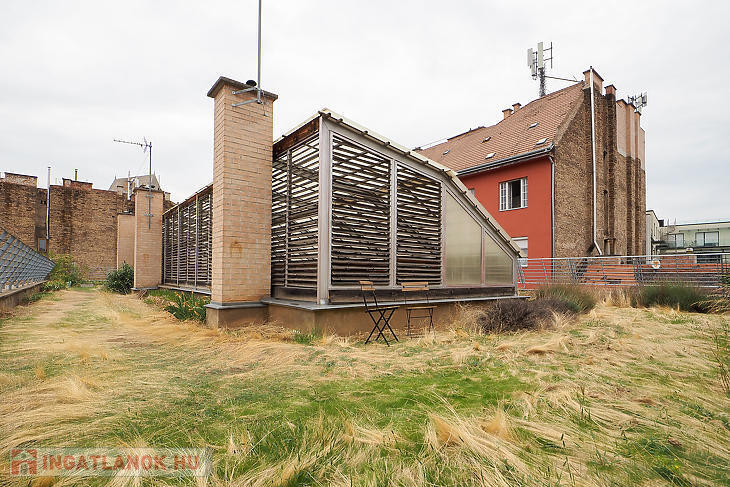 A társasház tetején a lakók kizárólagos használatában lévő tetőterasz található, amely zöldterületet biztosít a belváros szívében.