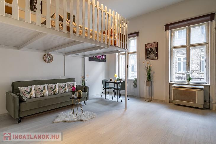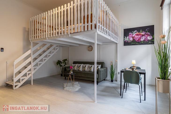 A két ablakos szoba igény szerint leválasztható, jelenleg a 3,65 m belmagasságot kihasználva hálógaléria került kialakításra.