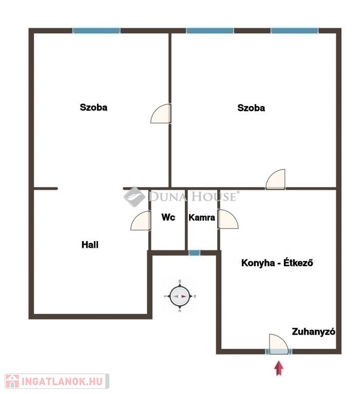Az ingatlanban jelenleg két tágas szoba, egy hálószobaként is használható hall, egy külön wc, egy kamra, és egy étkezős konyha helyiségek találhatóak. A lakás jelenlegi elrendezése átalakítást igényel, a fürdőrész a konyhában került kialakításra, de könnyen leválasztható, vagy áthelyezhető. Átalakítási ötletek, lehetőségek tekintetében készséggel segítjük Önt a lakás megtekintése során.