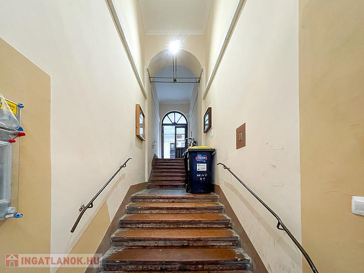 Corvin negyedben első emelet magasságában lévő, de ingatlan-nyilvántartás szerint földszinti, világos lakás eladó.