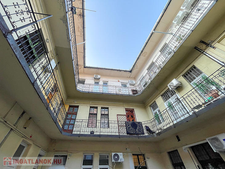 Corvin negyedben első emelet magasságában lévő, de ingatlan-nyilvántartás szerint földszinti, világos lakás eladó.