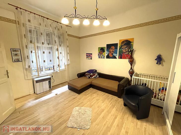 1912-ben Vermes József műépítész által épített szecessziós épület emeletén lakás eladó, külön nyíló szobákkal és tágas étkezős konyhával.
