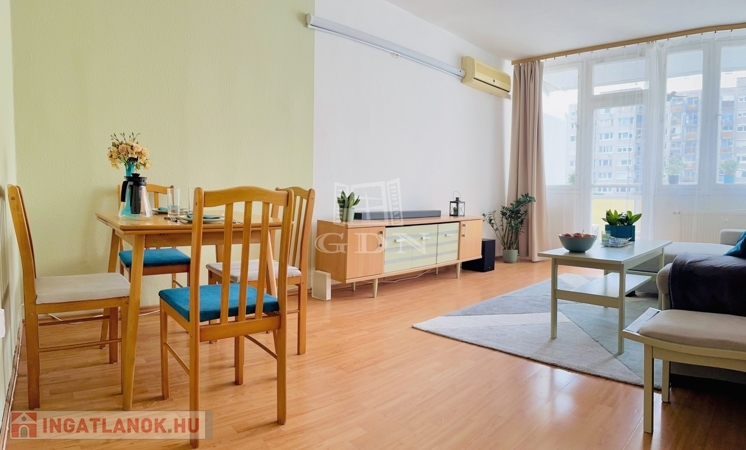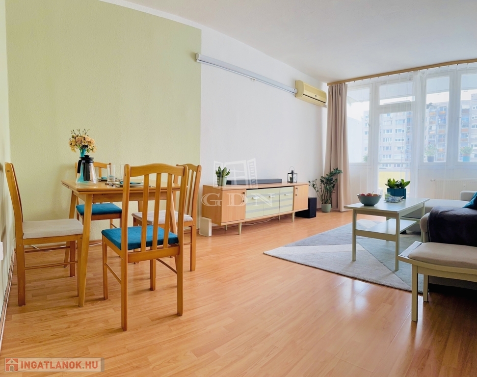A nappali klimatizált(Split klíma), egy 4 négyzetméteres erkéllyel.