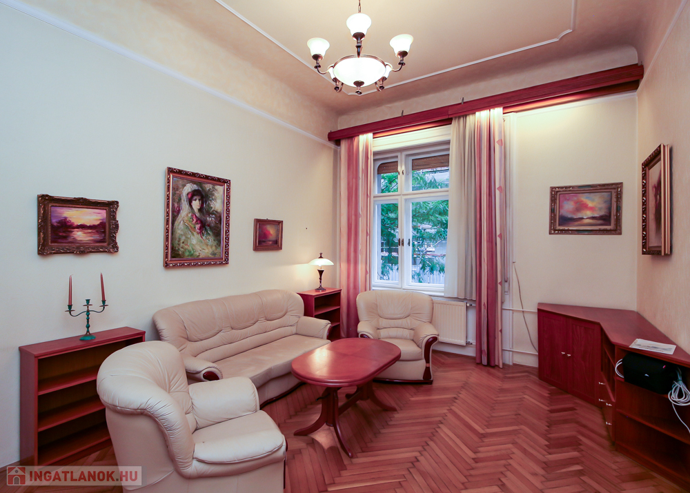 Az eladásra kínált ingatlan Budapest VIII. kerületében, a Fűvészkert közvetlen szomszédságában egy 1900- 1915. körüli építésű kulturált állapotú polgári társasház magasföldszintjén helyezkedik el, ablakai utcai nézetűek.