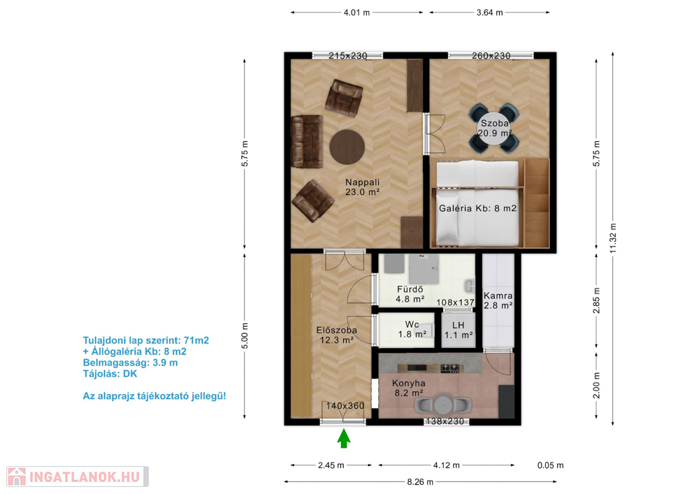 A 71 m²+ galéria kialakítású lakás 2000-ben került teljeskörű felújításra, ennek során figyelembe véve a miliő megtartását, annak szintjének emelését a beépített bútorok tekintetében is. Melegvíz- ellátása és fűtése gázkazánnal üzemel, utóbbi lapradiátoros hőleadással. Nyílászárói Gerébtokosak, fából készültek és redőnnyel felszereltek. Az ingatlan jelenlegi állapota a felújítás óta eltelt 25 évet nézve, műszaki szempontból a mai kor követelményei szerint közepesnek mondható. Mindazonáltal ez a lakás valóban megvigyázott, szép állapotú.A képeken látható beépített és szabadon álló gépek, bútorzat a kínálati ár részét képezik.