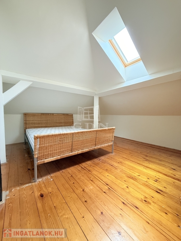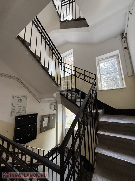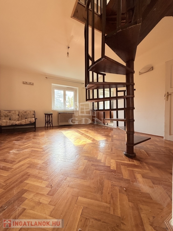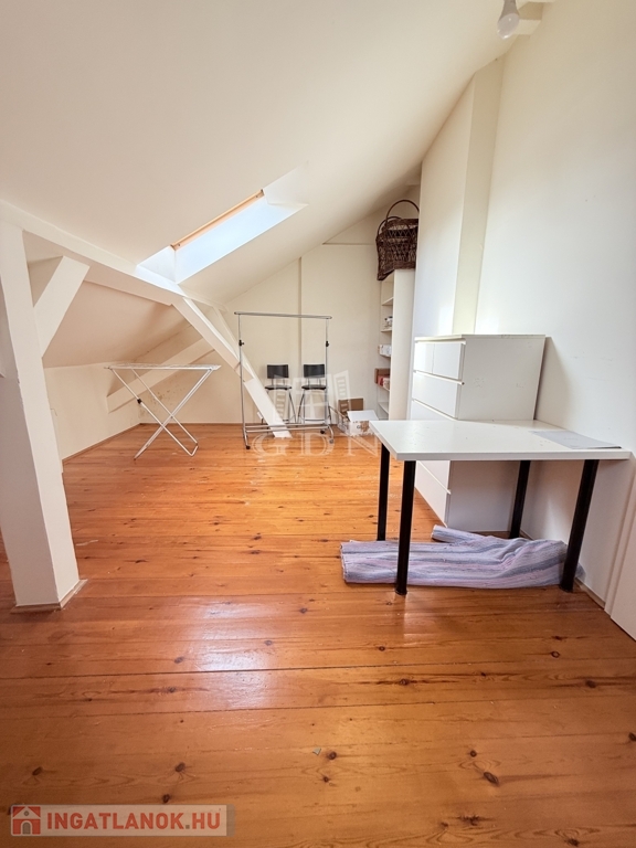 Titkos favorit a zavaros ingatlanpiac sokaságában, Zugló és Józsefváros határán a Puskás aréna mellett kiemelkedő infrastruktúrával. Ha szeretne központi elhelyezkedéssel egy kiváló, lakható, de akár könnyen bérbeadható társasházi lakást megfizethető áron akkor érdemes ezt az ingatlant személyesen is felfedeznie. Csupán 4 megállónyira (7perc metró) a Deák Ferenc tértől, Stadionok metró megállótól séta távolságban, madárcsicsergős, zöld és békés környezetben Stróbl Alajos utcában található az ingatlan. Elkerített zárt kertben áll az a 6 lakásos lépcsőház melyben a legfelső, második emeleten helyezkedik el ez a különleges, sallangoktól mentes duplex lakás. Az összes ablaka a csendes belső kert irányába néz és napkeltétől napnyugtáig világos, fényárban úszik. Az épület rendezett, a tetőt 10 éve újították fel új cserépfedést kapott, egyidejűleg velux ablakok kerültek beépítésre a felső szinten és az alsó szinten is műanyag ablakok váltották a fa nyílászárókat. Az alsó szinten az előszobából nyílik az összes helyiség, egy tágas háló, mellette egy praktikus kamra /dolgozó ablakkat és a fürő illetve a külön wc kapott helyet a konyha nappali mellett. A konyha – étkező és nappali jelenleg egy egység, de az ablakok elhelyezkedésének köszönhetően akár újra külön választhatóak. A nappaliból vezet fel egy csigalépcső, ahol további két hálószoba (ablakokkal)található, igény esetén a felső szint is alkalmas egy zuhanyzó és mosdó elhelyezésére. Az alső rész 47m2 a felső pedig bruttó 56m2 , a földhivatali nyilvántartás szerint 77m2, az értékesítési alapterületkén a 190cm alatti területet a szokásos 50%-kal került feltüntetésre. Fűtését tekintve jelenleg gázkonvektor, ami akár egy mika kazánra is cserélhető. Igény esetén a fűtés hőszivattyús klímákkal is megoldható opcionálisan H tarifával párosítva. A lakást immár 6 évig bérlő lakta, azonnal birtokba vehető az ingatlan. A környéken minden megtalálható, ami városi mindennapok kényelméhez elengedhetetlenek. Könnyen parkolhatóak a környező utcák, kiváló tömegközlekedési lehetőségek állnak rendelkezésre. Az aréna pláza csupán 900m távolságra. Tökéletes lehet akár nagyobb családok részére, de bérbeadás is korrekt hozamot hoz a stabil ingatlan ár növekedés mellett így magas inflációs környezetben értékálló befektetés.