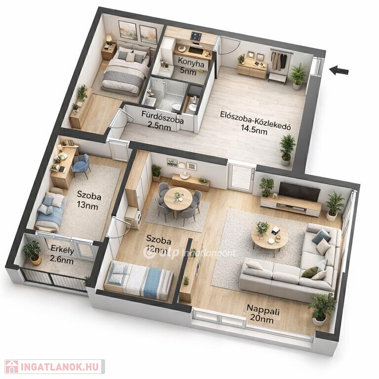 A lakás egyik legnagyobb előnye a kiváló, rendkívül praktikus elosztás: minden szoba és helyiség külön nyílik, így ideális választás akár családosoknak, akár fiatal pároknak vagy befektetőknek, hiszen könnyen kiadható és jól hasznosítható. A tágas nappali kellemes közösségi térként szolgál, míg a külön nyíló szobák biztosítják a nyugodt pihenést, az erkély pedig további kényelmi pluszt jelent.